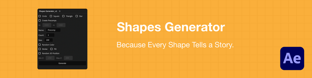 Tired of manually creating shapes in After Effects? The Shape Generator is here to save the day! This powerful script lets you generate circles, squares, triangles, and stars with just a few clicks. Customize shapes with random colors, strokes, fills, and 3D positioning to add depth and dimension to your animations.